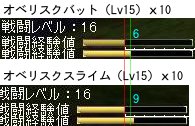 ・ソル16で、オベのこうもり(15)とスラ(15)をそれぞれ10匹ずつ倒して経験値の差を見る