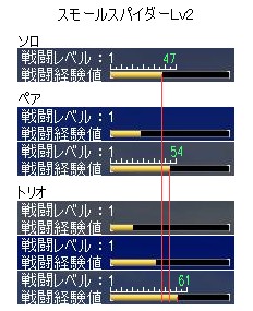 | スモールスパイダー(Lv2) | ドット | 47 | 54 | 61 |