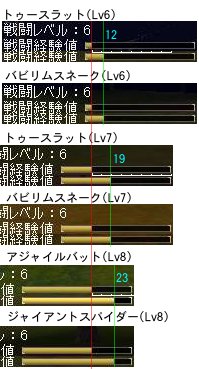 ついでに同じMobばっか倒したときの経験値の入り具合。